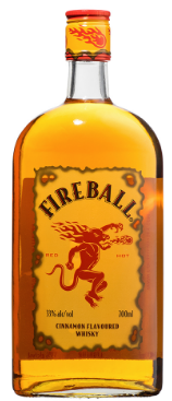 Fireball Cinnamon Whisky is a mixture of whiskey, cinnamon flavoring and sweeteners that is produced by the Sazerac Company. Alcohol Volume: 33%